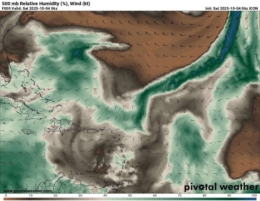 500 mb Relative Humidity, Wind