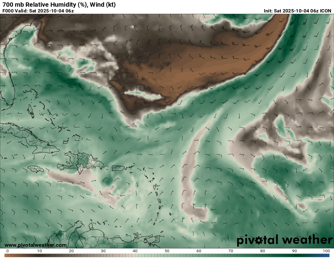 700 mb Relative Humidity, Wind