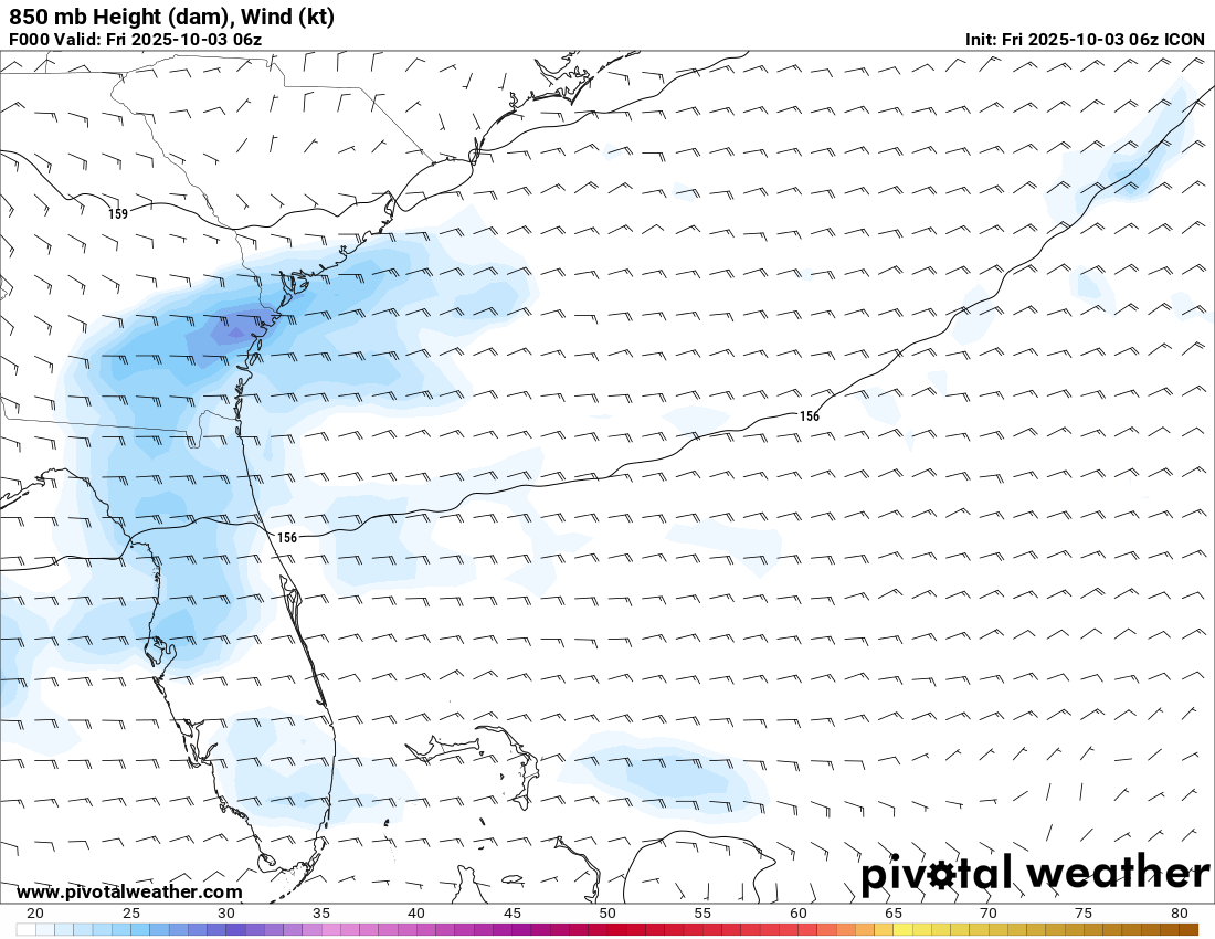 850 mb Height, Wind